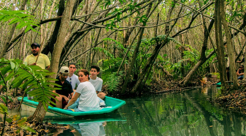 Votre aventure commence en compagnie d'un groupe de voyageurs dans un paradis écotouristique, faisant partie du patrimoine mondial de la Réserve de Biosphère Spéciale, officiellement déclarée refuge pour la faune depuis 1979. Une excursion en bateau vous attend à l'embouchure de la rivière Esperanza dans le Golfe du Mexique, où vous apprécierez un écosystème naturel unique. Vous y trouverez des canards migrateurs du Canada, des poissons, des pélicans, le flamant rose ou caribéen, parmi 234 autres espèces de mammifères. Ensuite, vous visiterez l'"ojo de agua" où vous pourrez nager à travers des tunnels naturels formés par les branches. Pour conclure votre voyage, vous dégusterez un délicieux repas avec une vue magnifique sur la plage.